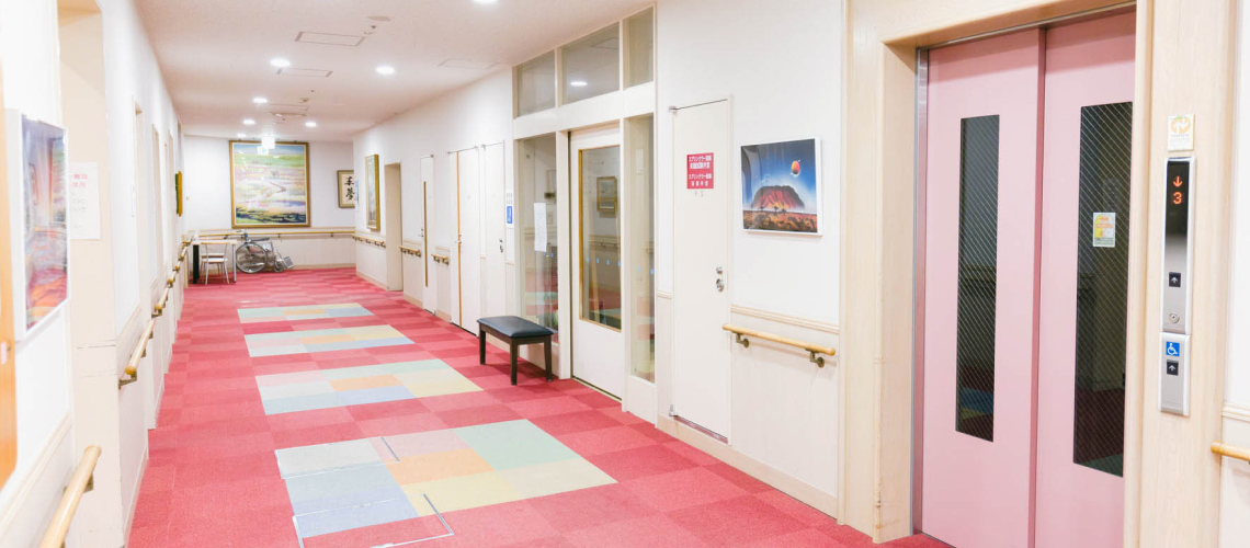 | 1階 | 通所リハビリテーション・リハビリスペース・食堂・大浴場・特殊浴室・レクリエーション室・安静室・カンファレンス室・ボランティア室・相談室・理美容室・喫茶(カラオケ)室・会議室・施設長室・電話コーナー・厨房 |